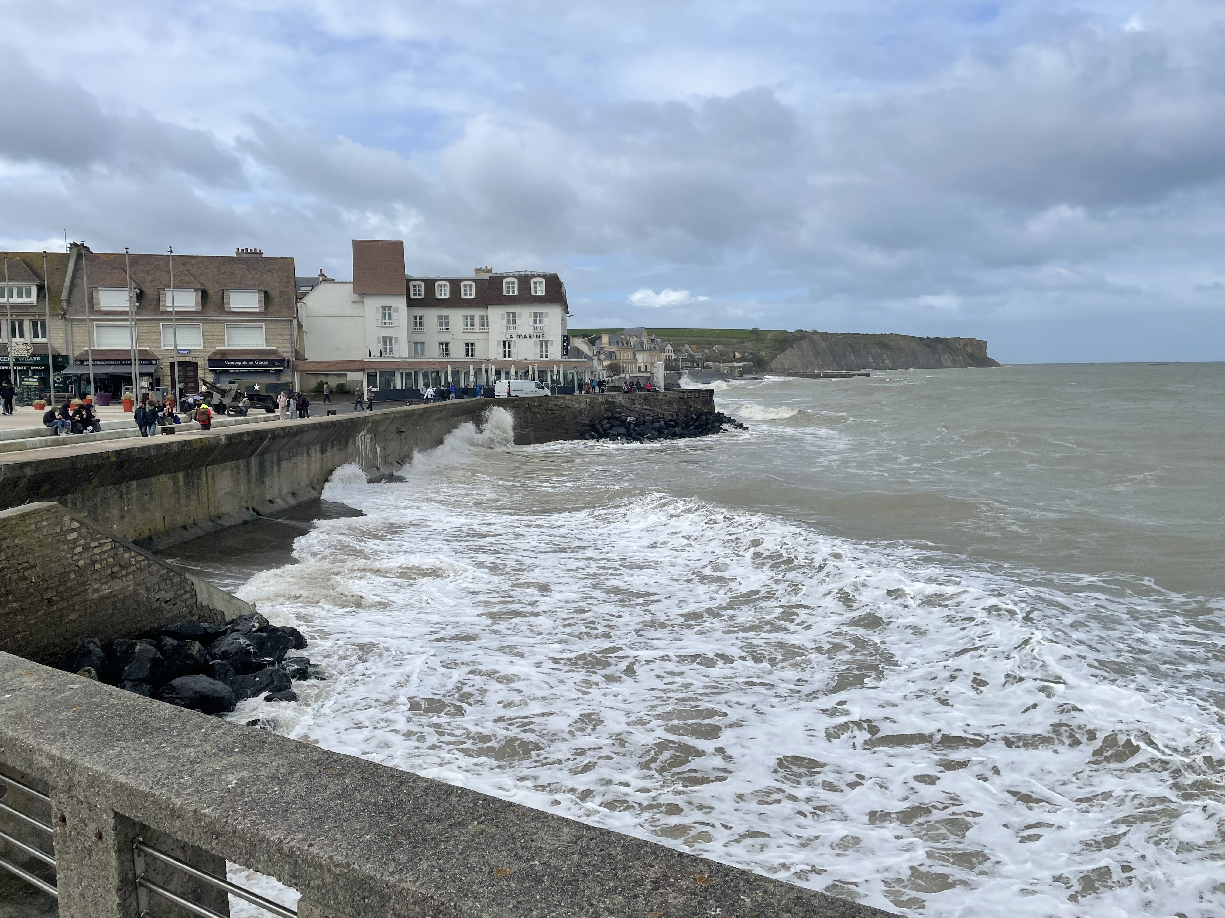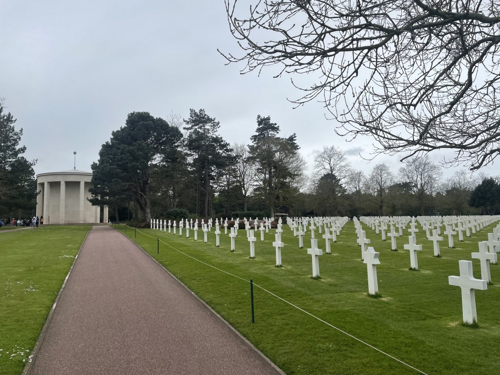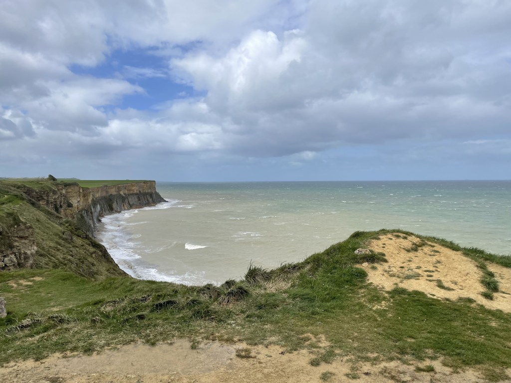 From there, we went up to Bayeux to visit the Normandy landing beaches. Amazing to get a glimpse of what was involved in D-Day. If I’m remembering correctly, over 2 million Allied soldiers were involved in retaking Normandy from the Nazis. For the D-Day operation, the Allies decided to create an artificial harbor at Arromanches using a flotilla of old ships and by sinking a bunch of hollow concrete structures to surround the bay and make it possible to land ships with troops, machinery and supplies. Troops scaled cliffs towering over landing beaches to reach German positions and take them out. And all this for an ideal, of freedom and equality and democracy.