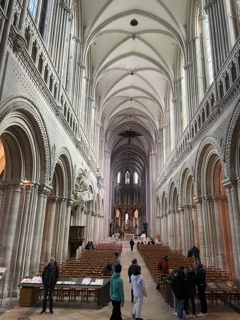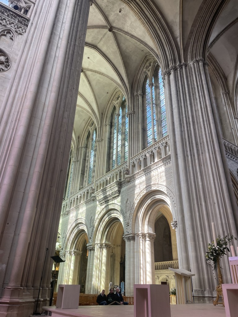 And while we were in Bayeux, we went to the cathedral and also to see the Bayeux tapestry. No photos of the tapestry as they don’t let you do that, but the thing is like 75 yards long and tells the tale of William the Conqueror’s invasion of England from Normandy. Kind of like an old school graphic novel. Pretty amazing as it even includes Haley’s comet! But here are a few photos of the Bayeux cathedral…